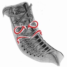 2. The correct way of shoe lacing that helps to stabilize the shoe tongue. Our foot shape is anatomical, not symmetric. The inner (inside edge) part is higher and has more volume, while the outer (outside edge) part is lower and has less volume. For more of each stroke the skater make, the tongue is pushed and follows the anatomical foot shape to fall towards outsides naturally. In all shoes the function of the tongue is to protect the foot instep and to help the leg flexions. To prevent this situation, a correct way of shoe lacing that helps to stabilize the shoe tongue is necessary. |