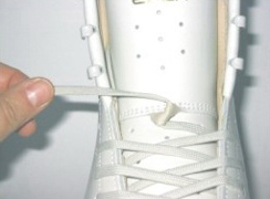 3. The correct way of lacing for upper hooks. Hint: Make a crisscross pattern in the center and lace around the hooks. |