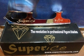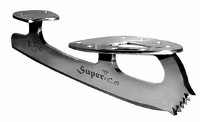 · Similar blades profile as of MK® Professional ice blades, rocker 7ft. · Available sizes: 7" ~ 11½", ¼" size interval · Blade style: Parallel · Steel: Japanese high-quality carbon steel HRC 52±2 · Toe rake design: Cross Cut · Blade and plates finish: Mirror chromed-plated · Laser-carved logo: "X-Pro" · Package: Gel protective strip, deluxe color box · US$160.00 per pair, shipping cost not included |